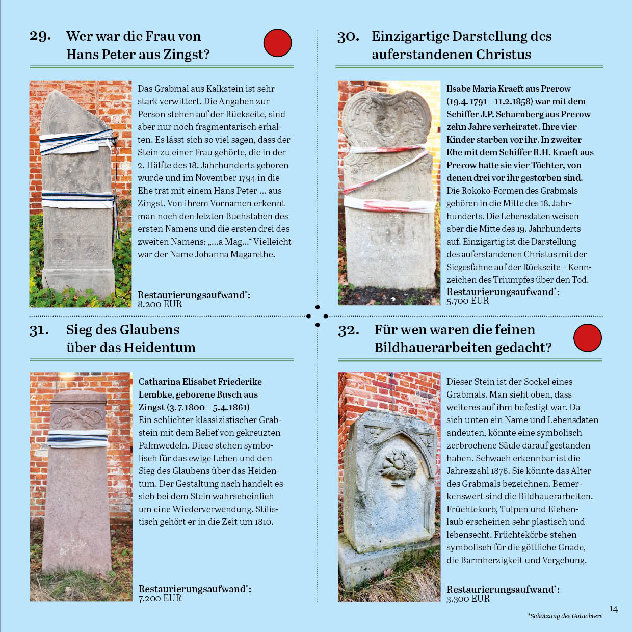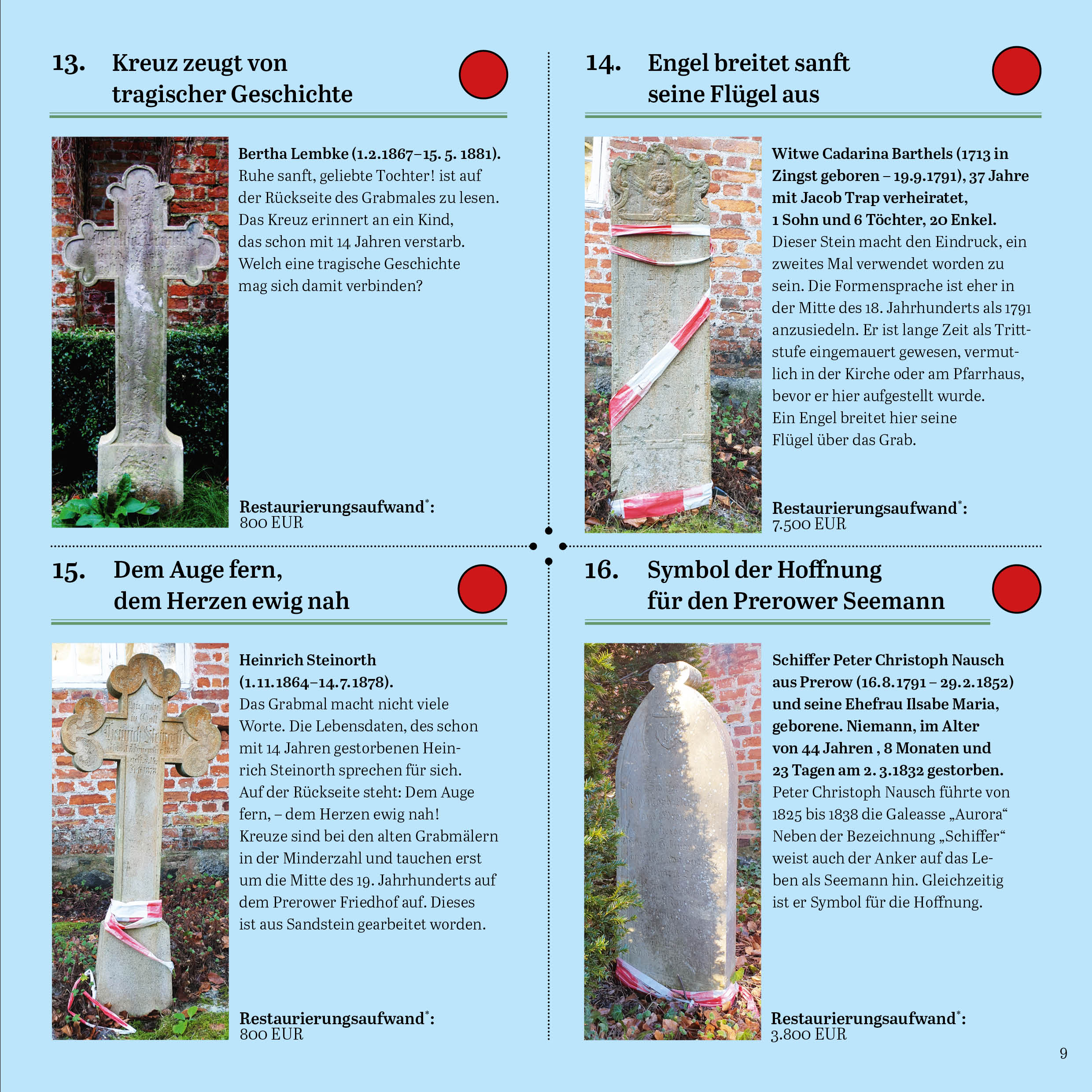 Alle Grabsteine mit einem halben roten Punkt haben anteilig einen Paten.
