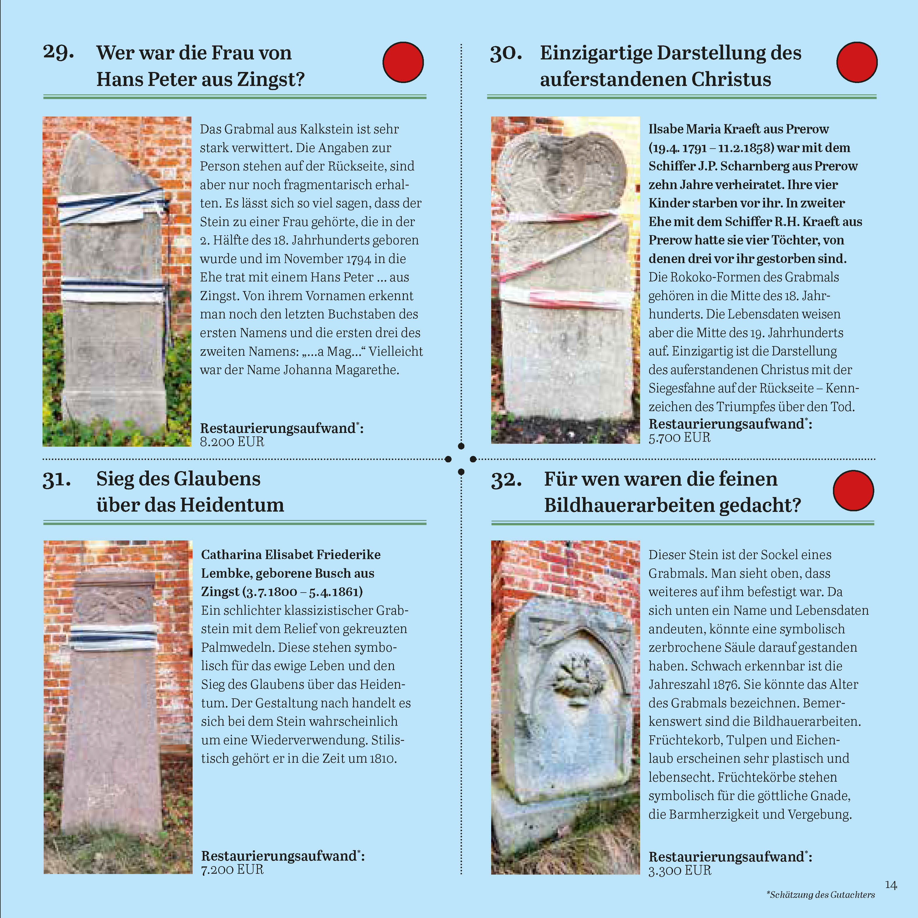 32 an der Seemannskirche stehende teilweise 300 Jahre alte historische Grabsteine sind vom Zerfall bedroht.